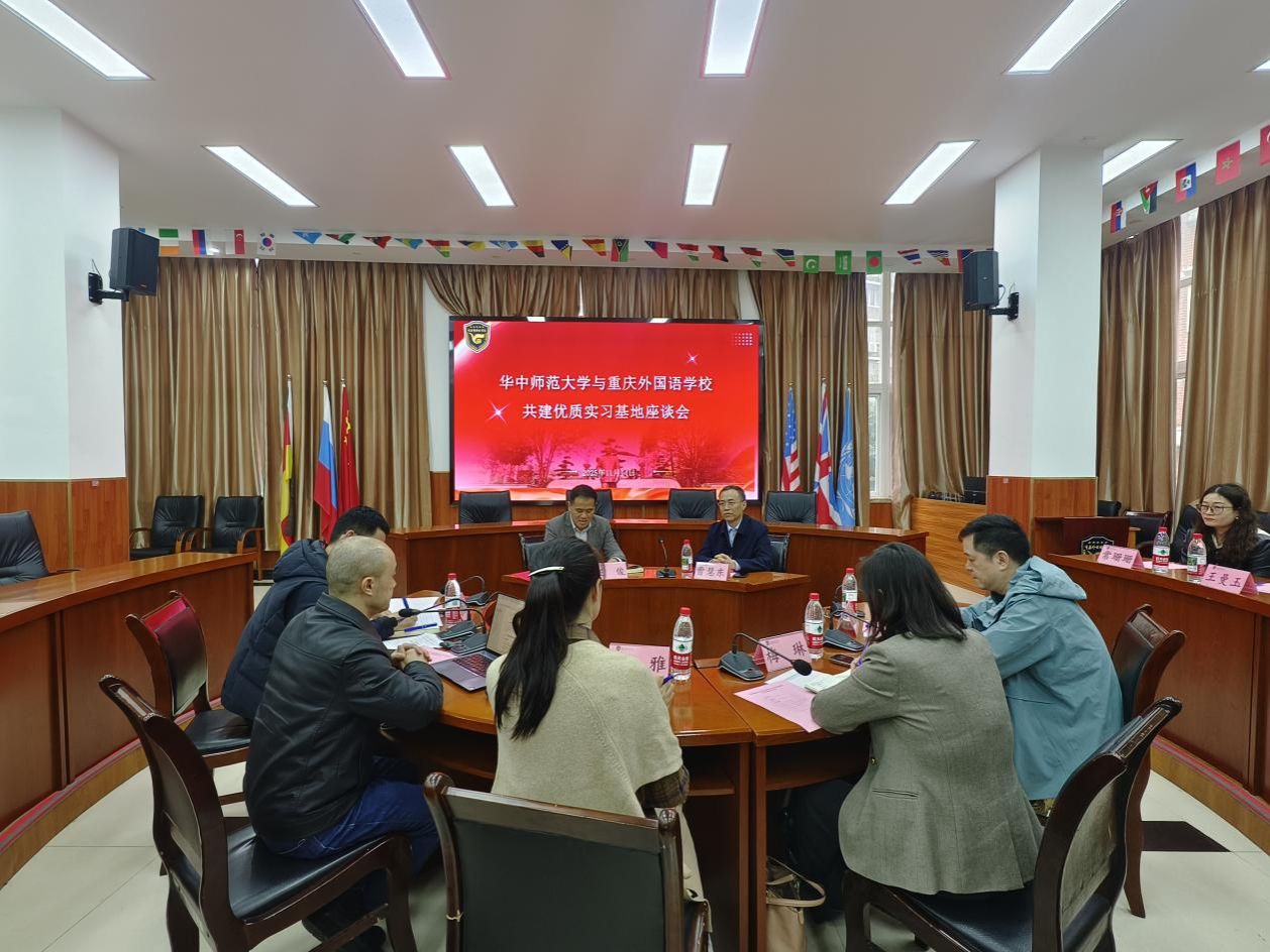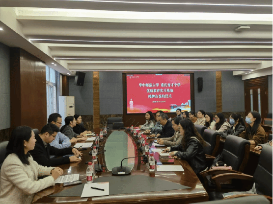 14日上午,一行人先后拜访重庆市育才中学校和重庆外国语学校。座谈期间举行了实习总结汇报及优质实习基地签约授牌仪式,双方就教师能力提升、实习基地建设及大中学教育一体化等进行了探讨。